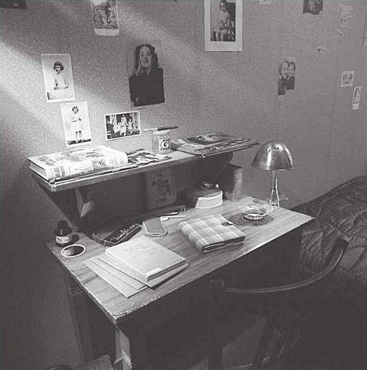 平台右手边的门通往我们的“后屋”。没有人会猜到那扇普通的灰色大门后还藏着这么多房间。跨过门前的一个小台阶就进了屋内。正对面是一段陡立的楼梯。左边一条狭窄的通道通向弗兰克家的客厅和卧室。旁边小一点的屋子是家里两位小姐的书房兼卧室。楼梯右边是一间没有窗户、有洗手池的盥洗室。角落处的门通向厕所,另一扇门通往我和玛戈特的房间。如果上了楼梯打开上面的门,你会惊奇的发现在这座运河边的老房子里竟然有如此宽敞明亮的内室。房间里有火炉和水池(好在它原先是库格勒先生的实验室)。现在成了范丹夫妇的厨房兼卧室,同时也是我们所有人的客厅、餐厅和书房。一个很小的侧屋将成为彼得·范丹的房间。正如大楼前部一样,这里也有大的顶楼和阁楼。这样一来,我就向你介绍了我们漂亮的“后屋”。