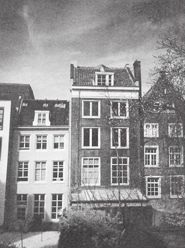 一段木质楼梯从楼下的走廊直通到三楼。楼梯顶端是一块平台,每端各有一扇门。左边的通向房屋前面的香料贮藏室、顶楼和阁楼。一段陡得容易扭脚的典型荷兰式楼梯从房屋前面通向另一扇临街门。